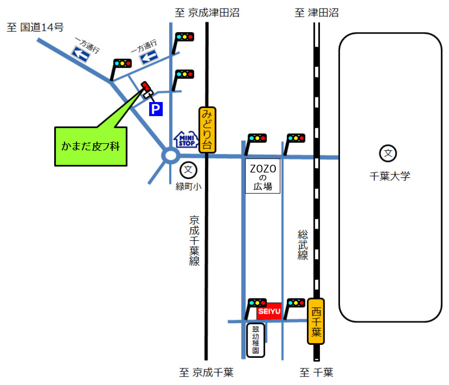 ※当院の付近は一方通行が多いため、交通標記にご注意下さい。