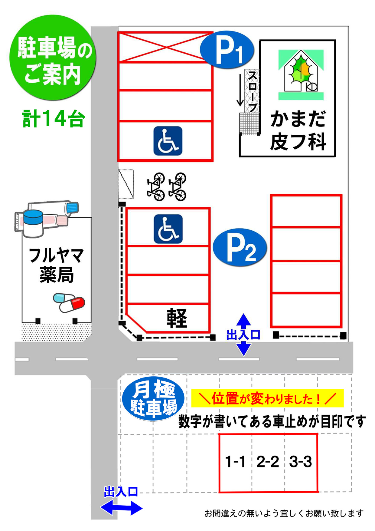 ※駐車場14台(クリニック前に4台、耳鼻科跡地に7台、道路を隔てた砂利の駐車場に3台駐車できます。